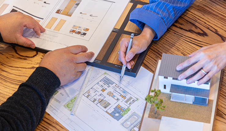 お客様が住みたい家のイメージをより具体的にするために、設計⼠から細かいアドバイスをさせていただきます。
